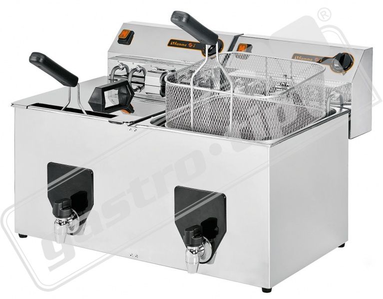 Výkonná a spolehlivá stolní fritéza konstrukce v celonerezovém provedení s kvalitním košem 2x (285 x 285, v = 118 mm).