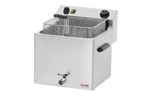 obsah oleje 10 l, celonerezové provedení, výpustný ventil, spec. úprava nerezové topné spirály, síťový vypínač, studená zóna, kontrolka chodu a vyhřátí, regulace teploty 50 - 190° C, rozměr koše: 30 x 24 x 12 cm, napětí 400 V /3N/ 50 Hz, výkon 8 kW
