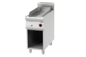 grilovací deska o síle 12 mm, zásuvka na odpadní tekutiny, chromovaný povrch desky, samostatně stojící jednotka na skříňce, s dvířky jako volitelnou možností, vynikající tepelná vodivost desky