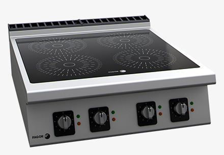 • Varné zóny jsou vymezeny vyznačeným kruhem o průměru Ø 280 mm. Výkon každé zóny tvoří 5 kW. Rychlý ohřev. Ideální pro servis „À la carte“.