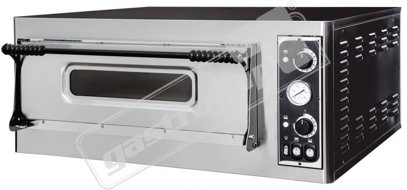Jednokomorová elektrická pizza pece řady BASIC. Snadné a přehledné mechanické ovládání umožňuje individuální nastavení výkonu spodních a horních těles v komoře případně vypnutí spodního, nebo horního tělesa. Pece jsou vybaveny analogovým teploměrem,a termostatem do 500°C, vnitřním osvětlenímkomory. Provedení s nerezovým čelem, kvalitní izolací a opláštění v laku.