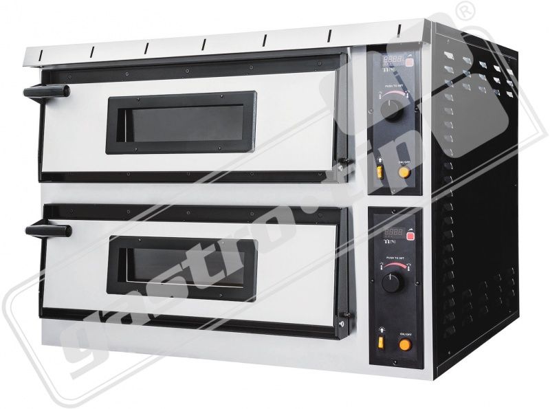 Výkonná elektrická pizza pece řady PLUS XL DIGITAL - dvoukomorová. Snadné digitální ovládání umožňuje přesné nastavení teploty v komoře, individuální % nastavení výkonu 3 spodních a 3 horních vysokoteplotních pancéřovaných těles (rychlý náběh a rozložení teploty) v obou komorách. Funkce "BUSTER" pro okamžité zvýšení výkonu na 100% (spodních a horních těles) až do dosažení nastavené teploty v komoře. Komora je vybavena, komínkem, digitálním teploměrem a termostatem do 500°C. Robustní pec, kvalitní izolace z minerální vlny, šamotové dno, osvětlení komory, nerezové provedení dveří a čela. Pec je navíc vybavena horním zákrytem.