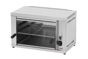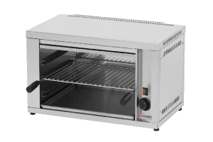 celonerezové provedení, 3 polohy roštu, 3 stupně výkonu, jedno topné těleso, kontrolka zapnutí a chodu, zásuvka na omastek, rozměr roštu: 43 x 31 cm, odnímatelná zadní stěna, napětí: 230 V / 50 Hz, výkon: 2,2 kW