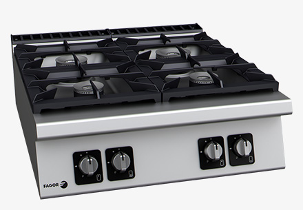 • Dvojité hořáky a difuzory z poniklované litiny zajišťují stejnoměrné rozdělení tepla po dnu hrnce, i v případě větší velikosti. Tím se zamezí akumulaci tepla v jednom místě a optimalizuje se přenos energie do pokrmu.