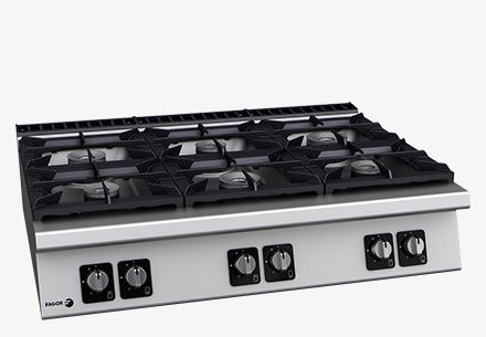 • Dvojité hořáky a difuzory z poniklované litiny zajišťují stejnoměrné rozdělení tepla po dnu hrnce, i v případě větší velikosti. Tím se zamezí akumulaci tepla v jednom místě a optimalizuje se přenos energie do pokrmu.