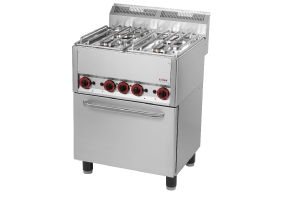 celonerezové provedení, výkonné hořáky, 2x hořák 3,6 kW, 2x hořák 3 kW, piezo zapalování, horní lisovaná deska pro snadnou údržbu, nerezový rošt, konvekční trouba s venti látorem GN 1/1