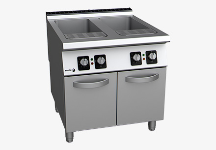 • Modely na plyn s hořákem z nerez oceli, který se nachází vně nádrže se spalovací komorou, což umožňuje ohřev dna a stran komory (do minimální úrovně naplnění).