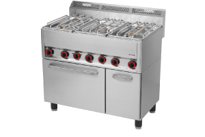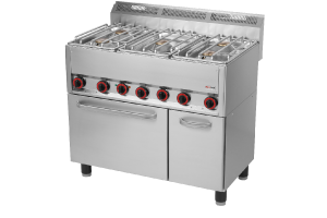 celonerezové provedení, vysoce výkonné hořáky, 5x hořák 4,5 kW, pevná konstrukce hořáků, mosazné odnímatelné hořáky, odnímatelná horní deska pro snadný přístup k hořákům, nerezový rošt, konvekční trouba s venti látorem GN 1/1