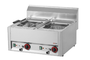 celonerezové provedení, lisovaná vana, bezpečnostní termostat 130 °C, možnost volby 1 velkého koše, 2 středně velkých košů nebo 4 košů na jednotlivé porce bude definována s objednávkou, 2x vypouštěcí kohoutek vody s bezpečnostní pojistkou, topné těleso je vyrobeno z materiálu Incoloy 820